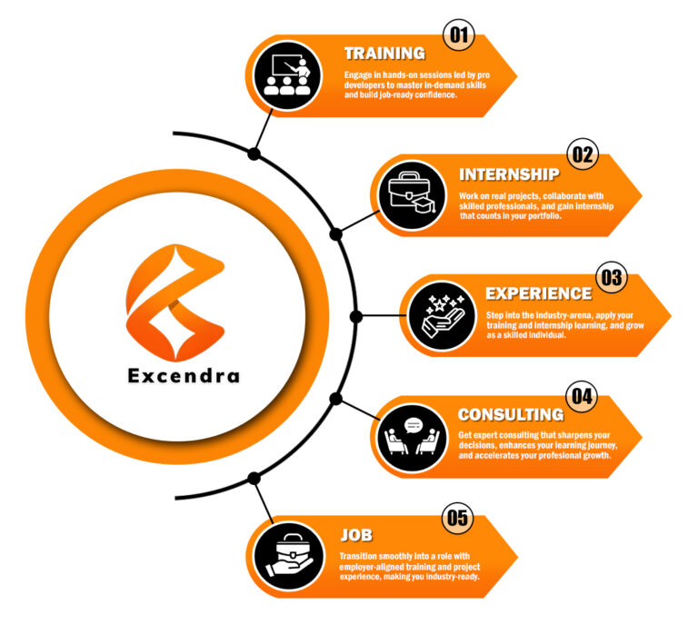 Excendra is the applied learning platform for the ambitious builder. We replace theoretical overload with a ruthless focus on in-demand skills, portfolio-building projects, and direct industry pipelines. We provide the expertise, the infrastructure, and the connections to transform your potential into a high-value tech career.